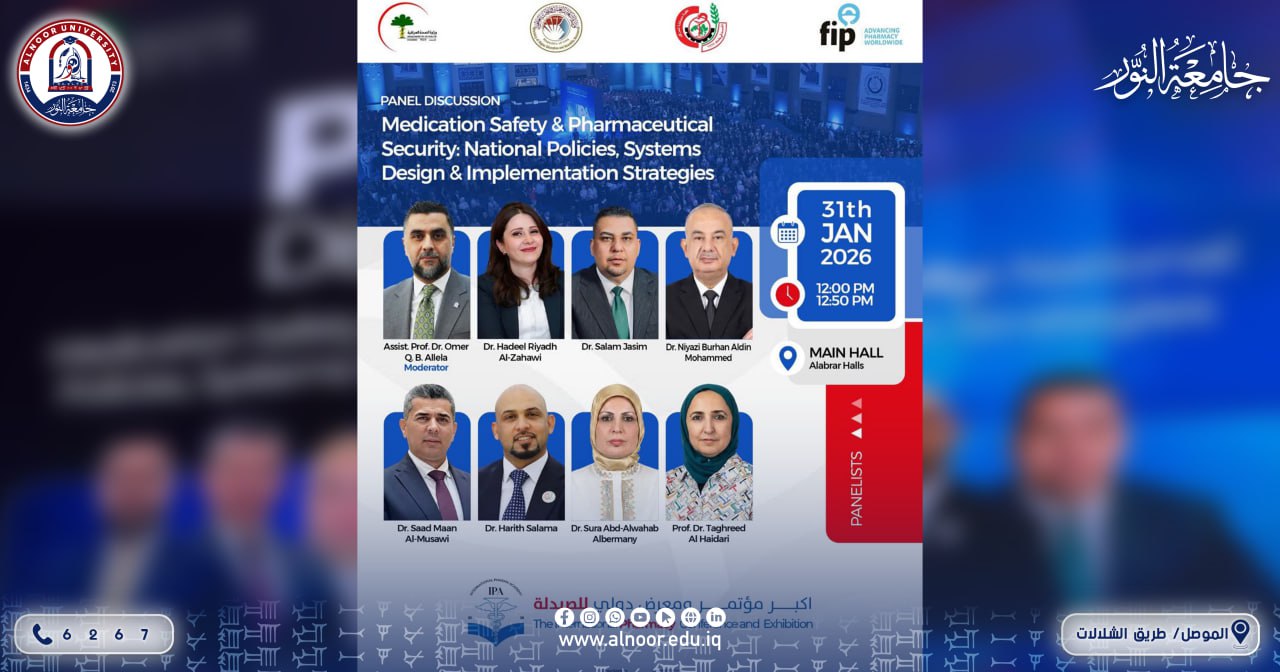 ترأّس الاستاذ المساعد الدكتور عمر قتيبة بدر الدين الليلة عميد كلية الصيدلة بجامعة النور إحدى جلسات مؤتمر ومعرض الصيدلة الدولي (IPA).. وهي جلسة نقاشية متخصصة تحمل عنوان: