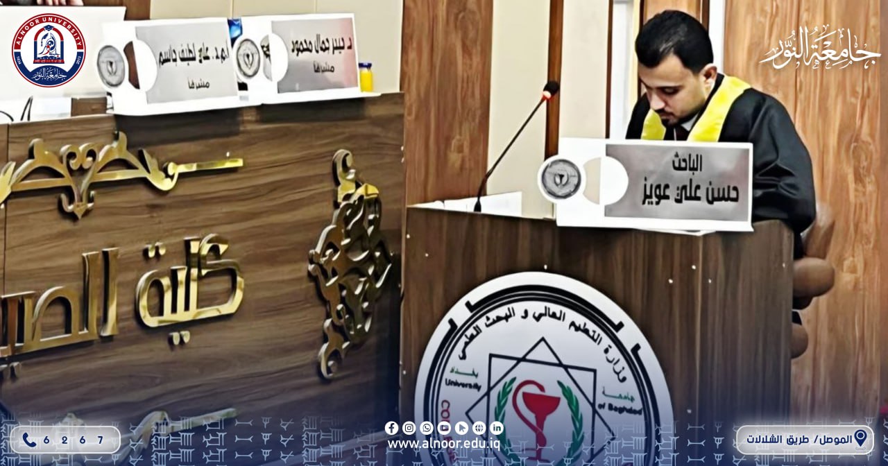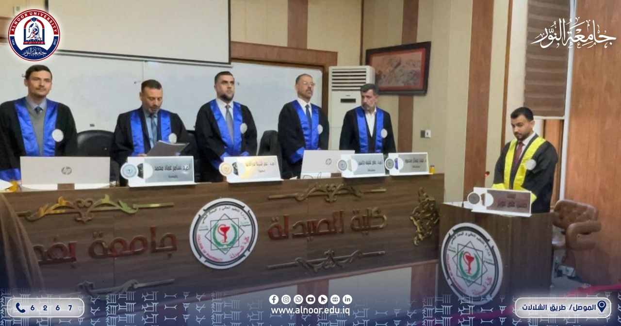 شارك الأستاذ المساعد الدكتور عمر قتيبة بدر الدين عميد كلية الصيدلة في جامعة النور، عضواً في لجنة مناقشة رسالة الماجستير للطالب حسن علي عويز في كلية الصيدلة بجامعة بغداد، عن رسالته الموسومة: “التحديات التي تواجه علاج مرضى داء الأمعاء الالتهابي الذين يستخدمون الأدوية البيولوجية وتأثير ذلك على نتائج المرض: دراسة ثنائية الطور”.