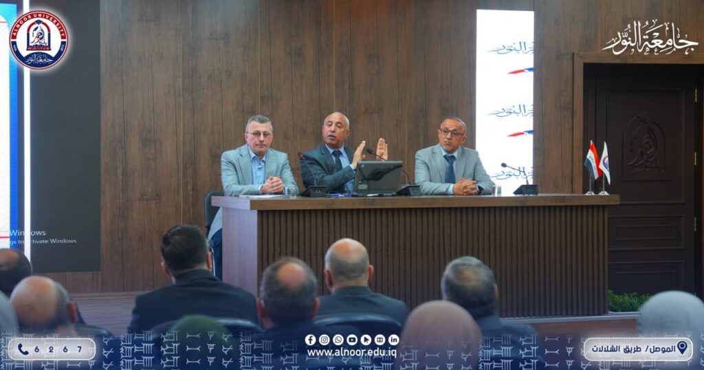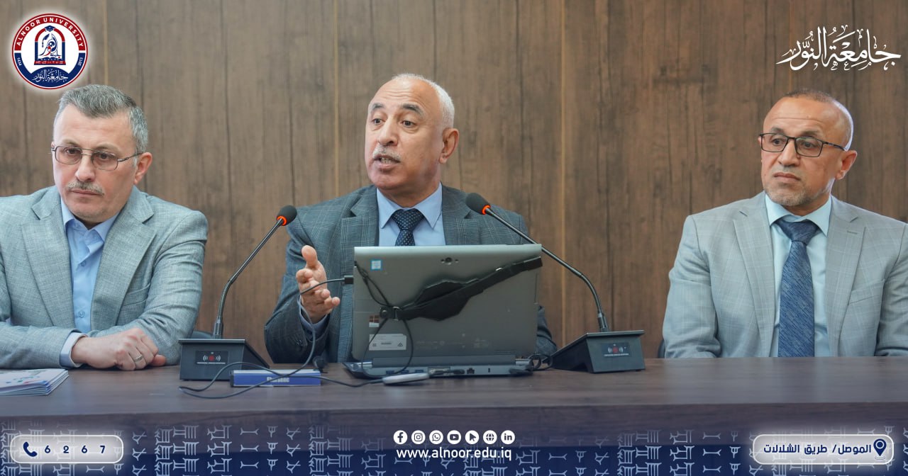 بحضور عميد كلية الصيدلة في جامعة النور الأستاذ المساعد الدكتور عمر قتيبة بدر الدين الليلة، استضافت الكلية صباح يوم الأربعاء الموافق 11/2/2026 ورشة علمية خُصصت لشرح تعليمات الترقيات العلمية السابقة والجديدة، وذلك بمشاركة أعضاء لجنة الترقيات العلمية واللجنة العلمية في كلية الصيدلة بجامعة الموصل.وضمَّ وفد جامعة الموصل كلاً من:الأستاذ الدكتور حارث خالد القزاز رئيس اللجنة العلمية، والأستاذ المساعد الدكتور محمود هاشم محمود عضو اللجنة العلمية، والأستاذ المساعد الدكتور علي عبد الحكيم حامد عضو اللجنة العلمية، والأستاذ المساعد الدكتور مصعب محمد خلف عضو لجنة الترقيات، والأستاذ المساعد الدكتور كرم عامر الدباغ عضو لجنة الترقيات.وشهدت الورشة نقاشات علمية تناولت آليات الترقيات الأكاديمية ومتطلباتها وفق التعليمات المعتمدة، بما يسهم في دعم المسيرة العلمية والبحثية والارتقاء بالمستوى الأكاديمي للتدريسيين.