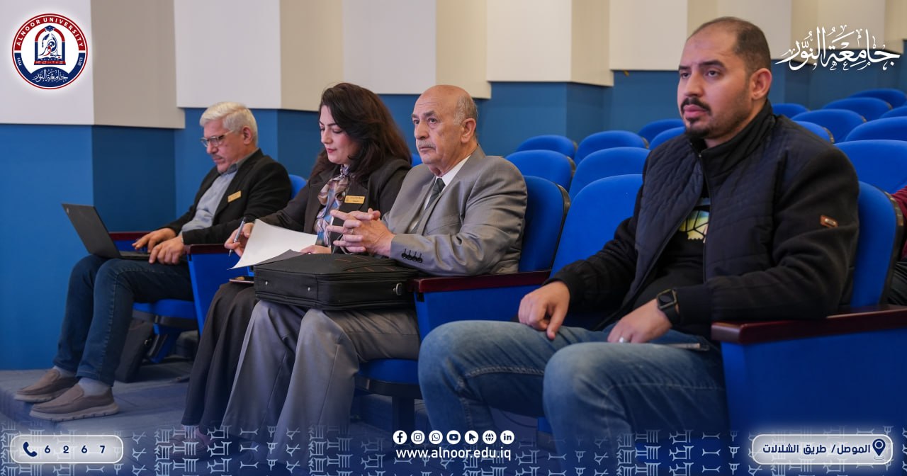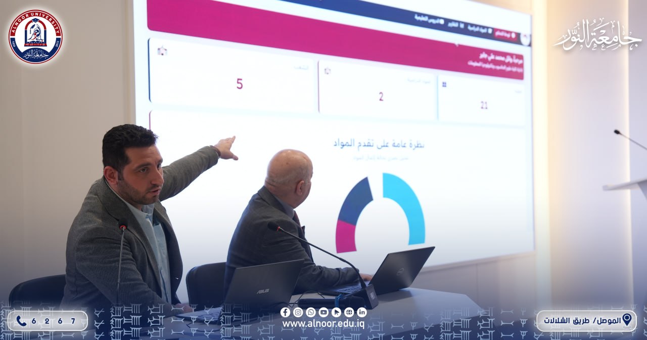In the presence of الدكتور عمر قتيبة بدر الدين , Dean of the College of Pharmacy at Alnoor University , نظّمت الكلية يوم الأربعاء الموافق 2026/4/15 ورشة تدريبية بعنوان كيفية استخدام نظام (IQ-Learn)، وذلك بإشراف Dr. Shakir Mahmood Saied، وبمشاركة كلٍّ من المدرس الدكتور مجد موفق يعقوب، والمدرس شامل شكر محمود، والمدرس المساعد طيف أنمار بدران.